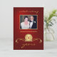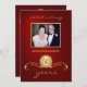 Convites de festas personalizados do 50º aniversário — Destaques elegantes de ouro em negrito fundo Real Ruby Vermelho com quadro fotográfico e monograma antigo clássico. Adicione sua própria foto e personalize o nome, a data e os detalhes da ocasião feliz. Perfeito para fotos contemporâneas ou antigas. Mude facilmente o texto e os números de outras celebrações de marco, 40.º, 45.º, 60.º, 65.º, etc. Envelopes correspondentes, correio e cartões de agradecimento disponíveis. **NOTA: Dimensionado para cartões de convite 5x7. Outros tamanhos e estilos disponíveis na galeria.