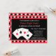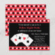 Convide amigos sobre para um partido de aquecimento da casa simples com uma noite do jogo de póquer e uma comida e umas bebidas. O convite está nas cores clássicas do preto, o vermelho e o branco com os cartões de jogo com o ás de espada, o ás de corações, o ás de clubes e o ás de diamantes. Os mesmos símbolos são usados como um teste padrão decorativo para a beira e o fundo. Personalize facilmente com seus detalhes do partido.