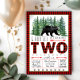Rapazes Lumberjack, segundo convites de festas de aniversários com ursos rústicos e abetos em um fundo de xadrez de lumberjack búfalo. Este convite de festas de segundo aniversário de lumberjack de xadrez de búfalo, vermelho e preto, é fácil de personalizar para o seu evento simplesmente adicionando os detalhes do seu evento.