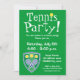 Convites de festas do tênis para a cor do aniversário de criança ou do texto e do fundo do CHURRASCO etc. Personalizable. O verso do convite tem um teste padrão da bola de tênis das bolinhas mas aquele pode ser suprimido para mais espaço do texto. Convide jogadores, treinador e fãs.