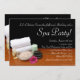 Os convites de festas dos termas, aperfeiçoam para um aniversário ou o dia da menina, o partido do pedi de mani ou a noite das senhoras para fora. Termas elegantes, terapia da massagem ou instalação do salão de beleza. Ainda a cena da vida inclui os artigos que seriam usados para um tratamento dos termas que inclui sais de banho minerais embebem, scented ou óleo do corpo natural, pedras quentes para massagem heated, toalhas brancas limpas e uma flor cor-de-rosa bonito, em uma mesa de madeira com fundo preto. Mostre seus classe executiva e estilo do salão de beleza com esta fotografia elegante que descreve o abrandamento e o luxo de termas reconfortantes, de pedicure e de serviços faciais.