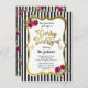Listras preto e branco encantadores e rosas tonificados vermelhos com quadro, ferraduras e pia batismal da folha de ouro. Tenha seu estilo de derby do vestido dos amigos com chapéus e bowties grandes!