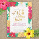 Convites tropicais de aniversário de ouro com flores tropicais bonito e divertidas e abacaxis, com sotaques de ouro. Perfeito para um cesto de aniversário com tema de luau! Mostrado aqui para um quadragésimo aniversário, mas você pode mudar para qualquer idade!