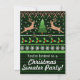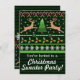 Convide convidados para a sua Festa de Suéter Feio no escritório ou em casa! Compartilhe algumas risadas neste feriado com este engraçado "Suéter de Natal Feio" em vermelho festivo, verde, branco e marrom. Duas renas saltando, entre uma árvore de férias, linhas horizontais de flocos de neve brancos e outros padrões decorativos de ricos. Esta divertida aparência de modelo de suéter cruzado é excelente de trazer memórias de presentes de Natal retrógrados e artesanatos feitos à mão. Todos os Designs Copyright © www.zazzle.com/christmascardshop