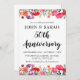 Comemore seu ouro de aniversário em estilo com nossos modernos convites de festas florais de 50 anos. Com elegantes flores aquáticas, esse design é a perfeita mistura de clássicos e contemporâneos. Imprima seus convidados com este sofisticado convite enquanto comemora 50 belos anos com seu amado casal.