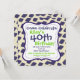 Este convite é mostrado como um convite de festas de aniversário de 40 anos, mas esses modelos de convites de festas de aniversário fofos podem ser facilmente usados para crianças ou adultos, ou podem ser personalizados para qualquer tipo de festa ou evento. Basta preencher o texto com os detalhes do seu próprio partido. Se você quiser mudar a cor do texto ou reorganizar as coisas, basta usar o botão laranja "Personalizar". O verso do convite tem o mesmo padrão colorido que o lado frontal.