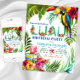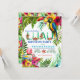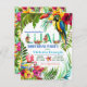O Luau convoca com belos papagaios tropicais e flamingos de cor aquosa sobre uma flor tropical colorida e fundo de folha.Este convite de aniversário de luau tropical é facilmente personalizado para o seu evento simplesmente adicionando seus detalhes. Você também pode mudar a cor de fundo na frente deste belo convite de "aquarela luau".