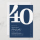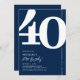 Apresentando um convite de festas aniversário de 40 anos azul e branco marinho que combina perfeitamente o encanto do mundo antigo do número de letra serif ousado '40' com um modelo personalizável moderno e amigável. Este convite não é apenas um cartão, é uma marca significativa para estimar o marco de virar 40.