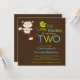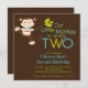 Enfie sua segunda festa de aniversário fora do direito com nossos convites de festas adoráveis do aniversário de criança do macaco do rapaz pequeno. Aperfeiçoe o convite para você celebração do partido de segundo aniversário! Nossos convites pequenos doces do macaco caracterizam um macaco pequeno bonito que balança em um ramo de árvore e são ajustados em um fundo marrom à moda. Nosso convite de aniversário do menino do macaco caracteriza um macaco pequeno original com um chapéu do partido & balloons o fundo. Visite nossa loja para o obrigado de harmonização você cartões de nota, etiquetas do aniversário, obrigado etiquetas e selos postais. © pequeno Tatti