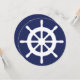 Convites de festas náuticos redondos do aniversário de criança. O partido marítimo do tema convida para o primeiro aniversario das crianças, o CHURRASCO, o competiam, o texto do chá de fraldas etc. Personalizable e a cor do fundo. Design velho bonito da roda do navio de navigação na cor dos azuis marinhos e do branco. Tipografia lunática. Personalize para o menino de marinheiro ou a menina pequena do capitão. Círculo engraçado design cortado da forma com logotipo e âncoras do leme do barco. Faça a circular convida para o 4o 5o 6o 7o 8o 9o 10o 11o 12o 13o costume de Bday etc. convidam cartões para o filho ou a filha. Dobre o impressão tomado partido. Ancora aweigh!