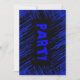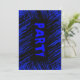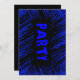 Convites de festas de aniversários para um adolescente. Convite preto do tipo "tíquete" em preto com texto azul brilhante e borda. O texto do tipo "grunge" engraçado em cores escuras que os rapazes gostam.
