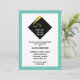 A graduação criativa convida a apresentar o boné preto clássico e o padrão de design de tassel dourado em fundo azul lacrimogêneo.
