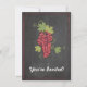 Os convites de festas bonito de provando de vinho de quadro-negro apresentam um monte de uvas e vinhas com garrafa de vinho, rolha e vidro de vinho, no estilo de giz desenhado à mão. Perfeito para uma fuga de vinho, chá de panela, festa de aniversário ou uma noite com amigos.
