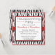 Esses convites de festas adoráveis de inauguração de casas apresentam um fundo de impressão em preto e branco. No topo está um quadrado vermelho decorativo com um dentro branco quadrado. As palavras "Partido do Aquecimento de Casa" são apresentadas em cima dos convites, em caracteres estilizados. Personalize o convite com seus detalhes para tornar esta a maneira perfeita de mostrar sua nova casa!