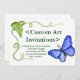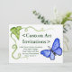 A pintura com uma borboleta azul com suas asas se espalhou em voo. A borboleta é acentuada por uma vinha verde com uma folha. Arte verde à borboleta renderizada em aquarela. Faça com que a borboleta verde personalizada convide cartões com o seu próprio texto e imagens para as festas temáticas de borboletas de excelente! Este design de convite para inseto de elogia outros designs de insetos de DonnaBellas por um evento temático de jardim como chá de fraldas, chá de casamento, festa de aniversário ou convites para casamento!