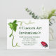 Pintura com uma joia vermelha com pontos pretos nas asas. Ladybug é acentuado por uma vinha verde com uma folha. Arte de ladicho vermelho renderizado em aquarela e acrílico. Faça com que a ladybug vermelha personalizada convide cartões com o seu próprio texto e imagens para as festas temáticas da ladybug do excelente! Este design de convite para inseto de elogia outros designs de insetos de DonnaBellas por um evento temático de jardim como chá de fraldas, chá de casamento, festa de aniversário ou convites para casamento!