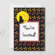 Um convite de festas personalizado com um padrão colorido de milho doce do Halloween em amarelo e laranja. Clique em Personalizar para adicionar seu nome ou mensagem e até salvar seu design para mais tarde.