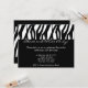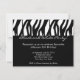 Convites de festas negros e brancos modernos e impressionantes. Preto com sotaques brancos, design de listras de zebra selvagens. Personalize on-line com os detalhes do evento.