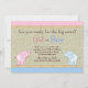 Adoráveis gêneros de elefantes de bebês, rosa e azuis, revelam convites de festas. É uma maneira legal de juntar a família e os amigos para contar as grandes notícias! Adicione seus detalhes à frente e/ou atrás, simplesmente escolhendo o botão laranja "Personalizar!" para começar a adicionar detalhes do evento, estilo da fonte, tamanho e cor da fonte e texto. Alguns gráficos gráficos ©BELGA-Dodles. Observe que todos os designs de convite que você encontrará no Zazzle são gráficos impressos em estoque de papel plano sem joias reais, arcos, levantados, gravados em relevo ou peças ou peças adicionadas.
