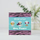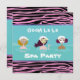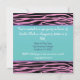 Cada convite de festas de spa apresenta três caricaturas de mulheres ou meninas encharcando na água do spa com máscaras de lama. As partes superior e inferior são desenhadas em uma impressão zebra rosa e preta. Uma fina faixa de desaparecimento roxo é aplicada ao longo das bordas para adição de decor. O texto diz: "OooH La" e "Spa Party". A parte traseira apresenta a mesma cor azul aqua-piscina com impressão zebra rosa e preta com a borda roxa esmaecida. O texto é um estilo feminino de coloração branca.