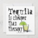 TEQUILA É MAIS BARATO QUE A TERAPIA. Um tiro de Tequila com uma fatia de Limão e Sal e o ditado, "a tequila é mais barata que a terapia". Humor coquetel.