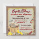 Convite de festas Rustic Oyster Roast com cheio de cesto de bushel de ostras saborosas rodeadas de cerveja fria, milho na pata, ostras picadas, molho quente, fatias de limão e um chuveiro de ostra em papel de vintage contra fundo de prancha de madeira. Excelente para aniversários, reuniões, aposentadoria, ou qualquer festa que comemore a ostra. Ilustração desenhada à mão por McBooboo.