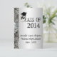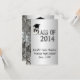 Elegante festa de formatura "Turma de 2014", convites ou anúncios com um visual de lantejoulas prateadas (impresso) adicionado para um brilho sofisticado! Gráfico metálico 3D "Turma de 2014" em um fundo prateado rico com um capuz de formatura fofo no topo. Adicione facilmente o nome do formando e o nome da escola, se desejar, na frente e seu texto personalizado no verso do cartão, que tem o mesmo fundo que a frente do cartão. Um capuz de formatura preto com uma borla dourada também é adicionado ao design da parte traseira. Rico e elegante, mas acessível! Ótimo para estudantes do ensino médio e superior, bem como para graduados universitários. Lembre-se da ocasião especial com esses convites de formatura personalizados, sofisticados e elegantes.
