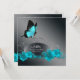 Convites de formatura de meninas borboletas azul-teal e preto elegantes. Lindo convite de formatura preto e azul-teal com borboleta com flores azul-teal e etiqueta de nome com rolo elegante é facilmente personalizado adicionando seus detalhes na frente e no verso simplesmente escolhendo o botão "Personalize!" para começar a adicionar detalhes do evento, estilo de fonte, tamanho e cor da fonte e texto. Por favor, note que - todos os desenhos de convite que você encontrará na Zazzle são gráficos impressos em papel liso sem joias reais, laços, relevos, rebaixados ou peças ou partes adicionadas.