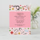 Convites criativos de formatura de enfermagem com suprimentos de saúde e flores em fundo rosa. Edite o texto para criar um convite ou anúncio de formatura de enfermeira única.