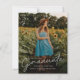 Este convite de formatura com foto moderno e elegante apresenta uma sobreposição de roteiro de graduado e nome, escola e foto personalizáveis na frente. O verso oferece parabéns e detalhes do evento com mais 2 fotos adicionais. Uma ótima maneira de mostrar seu graduado.