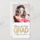Confetes com pontos e círculos festivos com glitter dourado e efeitos de folha de prata. Adicione o ano de formatura e o nome personalizado ou outro texto para um presente de formatura divertido. A aparência metálica é moderna e está na moda.