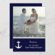 Somente recepção, após o casamento, convites temáticos tropicais ou náuticos com modelo de foto. Papelaria clássica, azul-marinho e branca com texto modelo, casal de âncora e estrela-do-mar brancos. Apresentando os recém-casados. Atualize o papel se desejar.