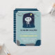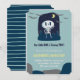 Este convite de aniversário de 2 anos de Halloween em azul com estes adoráveis crânios kawaii (esqueleto), morcegos voando e estas listras fofas no verso, é para menino (crianças - sem distinção de gênero). (Personalize as informações: Nosso pequeno boo está fazendo dois anos. Junte-se a nós para o fantástico segundo aniversário de Alexander, XXXX de outubro XX... )