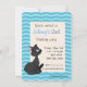 Impressão azul convida para o aniversário do menino com ilustração de gato preto giro, design de gato feliz