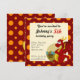A impressão de aniversário convida com a ilustração de um dragão vermelho guardando um tesouro. Ilustrada por Maxi Harmony
