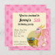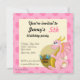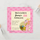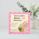 A impressão de aniversário convida com a ilustração de um dragão rosa guardando um tesouro. Ilustrada por Maxi Harmony