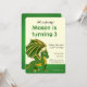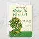 A impressão de aniversário convida com ilustração de um dragão verde giro. convite de aniversário fantasia temido ilustrado por Maxi Harmony