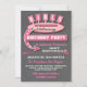 Convites de itinerário de viagem de fim de semana das meninas Super fofos e legais, esses convites apresentam um letreiro retrô para dar as boas-vindas às amigas em uma festa de aniversário no fim de semana e o verso contém todos os detalhes dos eventos divertidos. Fundo de quadro-negro e paleta de cores rosa e blush. Ilustração desenhada à mão por McBooboo