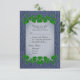 Um adorável convite de jeans com uma videira exuberante. Há uma área para três opções de prato principal