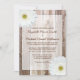 Um convite temático do casamento do país que caracteriza a madeira do celeiro e as margaridas brancas do gerbera. Os artigos de harmonização estão disponíveis.
