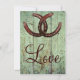 Este convite ocidental do casamento do país rústico tem duas ferraduras entrelaçadas na parte superior do convite. O fundo é o impressão de madeira afligido do celeiro que tem um matiz verde. A parte traseira do convite tem o mesmo design rústico do estilo country com a palavra "amor" no roteiro. Você poderia mudar este fraseio para personalizá-lo com os nomes dos noivos se você quis a. Estes convites do casamento do tema do país são perfeitos para casamentos do vaqueiro.
