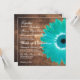 Do celeiro rústico do país da flor da margarida de Gerber de turquesa do Aqua da cerceta convites rústicos quadrados de madeira do casamento do país com uma flor colorida brilhante da margarida do verde azul do aqua no lado do convite em um fundo de madeira afligido do design que dá lhe um olhar rústico. Estes são perfeitos para um casamento temático do casamento ou da margarida de turquesa ou todo o casamento rústico do país.