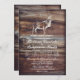Convites de madeira do casamento do tema da caça dos animais selvagens dos alces do design do país rústico. O fundo é um design de madeira impresso com uma silhueta branca de um alce na parte superior. O mesmo design é na parte de trás do anúncio. Estes são grandes para caçar casamentos temáticos, casamentos temáticos da natureza, os casamentos temáticos do antler, e para qualquer um que amam animais selvagens.