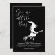 Uma bruxa assustadora voando sobre uma vassoura e o ditado divertido: "Dê-me todos os Boos, acentua este Convite de festas de Figurino de Halloween em um fundo negro, fazer este convite perfeito para o Partido Adulto do Halloween."