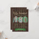 Convite de festa de Natal de suéter feio com três suéteres feios em um fundo de madeira rústica. Você pode personalizar facilmente esses convites divertidos de festa de Natal de suéter feio para o seu evento, simplesmente adicionando seus detalhes.