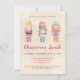 Um adorável design de aquarela com três malucos brancos em um antigo fundo de textura de papel na frente e um padrão de bailarinas, árvores de Natal, cavalos de balanço e calçados balés na parte de trás do cartão. Personalize o convite com os detalhes do almoço de Natal. Você pode alterar as cores da fonte e da fonte de acordo com o seu estilo.