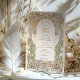 Este convite de chá de noiva deslumbrante apresenta o estilo icônico Art Nouveau de Alphonse Mucha. O design é inspirado nas linhas elegantes e curvas fluidas do Art Nouveau, com um toque de glamour Art Deco. O convite apresenta detalhes florais intrincados. O texto é impresso em uma fonte estilosa, perfeito para qualquer celebração de chá de noiva elegante.