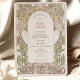 Este convite de noivado deslumbrante apresenta o icônico estilo Art Nouveau de Alphonse Mucha. O design é inspirado nas linhas elegantes e curvas fluidas do Art Nouveau, com um toque de glamour Art Deco. O convite apresenta detalhes florais intrincados. O texto é impresso em uma fonte estilosa, perfeito para qualquer celebração de noivado elegante.