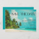 Convites de noivado de casamento com águas azuis tropicais e cena de praia com palmeiras para o seu casamento de destino, ilha ou praia! Personalize com seus nomes, data e local de casamento. Entre em contato usando o botão abaixo se precisar de ajuda ou quiser adicionar sua foto no verso deste cartão.