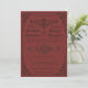 Aqui estão convites de noivado de casamento inspirados em Gothic Victorian em vermelho, apresentando ornamentos, rolos, trabalho de rolo, uma faixa, uma moldura de rolo floral, fundo de padrão damasco e outros detalhes de estilo do mundo antigo, todos inspirados no período medieval gótico e na era vitoriana. Elegância e requinte em seu melhor. Você pode personalizar os campos de texto de amostra ao seu gosto.